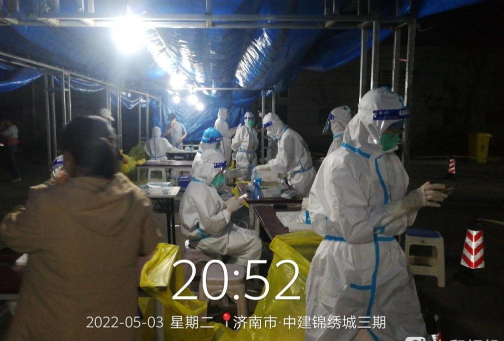 集团支援天桥区滨河雅居的下沉人员由翟思成带队,带领郭正亮、杜瑞帅、赵士民、杨世兴、冯鹏飞等5名志愿者,自4月27日进驻滨河雅居社区以来,他们听从社区安排,进行核酸检测维持秩序,人员摸排、统计数据等工作。“每天下班都得晚上10点半了”, 翟思成说,为保证社区居民核酸检测不漏一人,虽然大家的居住地距离滨河雅居都很远,但还是克服重重困难按时到岗,尽职尽责地完成社区工作。特别是自4月28日以来,滨河雅居楼栋出现密接和次密接,需要24小时管控,金钟集团的志愿者白天维持核酸检测秩序、给管控居民送菜送食品,晚上还要值夜班、进行住户摸查,条件艰苦、工作劳累,但是志愿者们没有怨言、只有担当,他们用实际行动践行国企责任,使命担当。