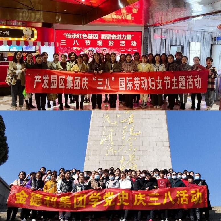 Beat365园区集团组织女职工开展庆“三八”爱国主义教育主题活动,观看了以抗美援朝战争为背景的电影《长津湖之水门桥》;金德利集团将三八妇女节与党史学习相结合,在英雄山开展女职工“学党史、心向党,凝聚发展动力”活动。